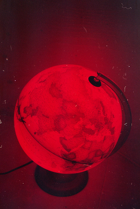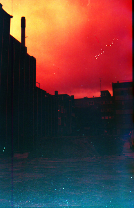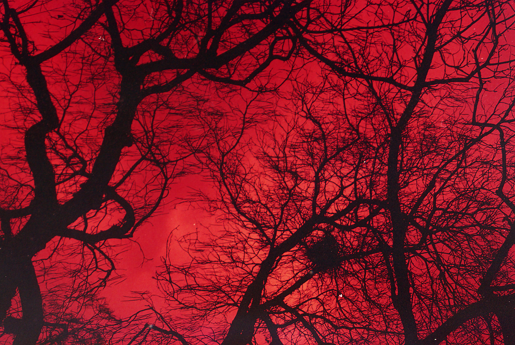 Zelf geproduceerde filmemulsie; 'redscale'.